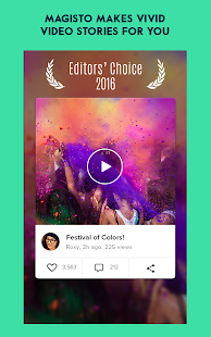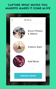 Bayangkan sebuah produksi video pribadi 24/7 yang mengubah foto dan video ke dalam sebuah karya video musik. produser film Magisto membuat gambar sensasional dari klip video menggunakan gambar Anda.
